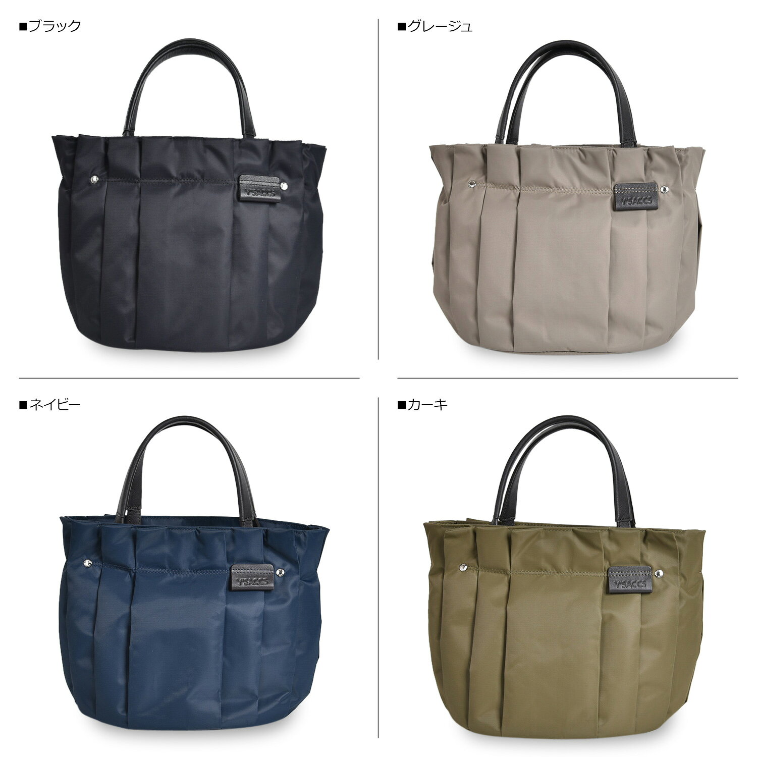 【最大1000円OFFクーポン配布中】 イザック Y’SACCS トートバッグ ショルダー レディース RECYCLED NYLON PLEATS 2WAY TOTE ブラック グレージュ ネイビー カーキ ブラウン ワイン レッド 黒 Y02-04-01
