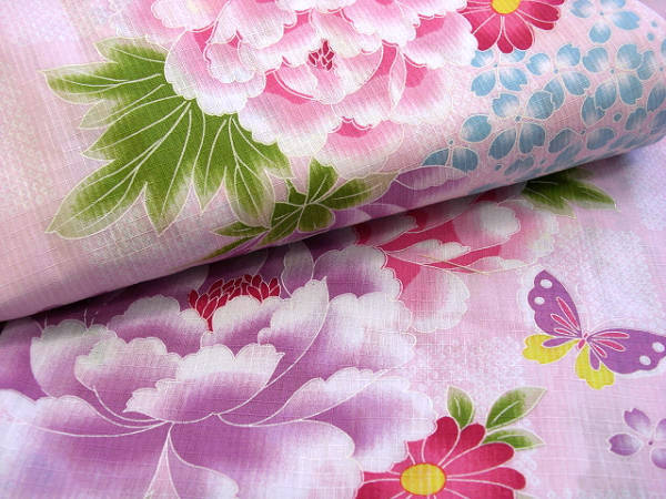 女子供浴衣 変り織り 13 14才 150 ピンク 牡丹 R606302-3E ★