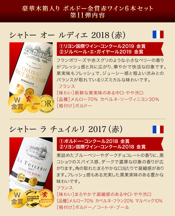 ワインセット 赤 送料無料 木箱入り 第11弾 ボルドー金賞 赤ワイン 6本 セット 金賞総数13個!豪華木箱入り ※同梱不可 (同商品のみ2セット迄同梱可、他商品との同梱不可) [T]