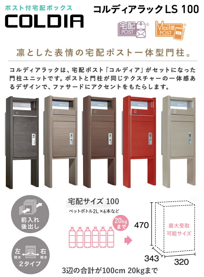 [宅配ポスト付き機能門柱] UNISON コルディアラックLS 100 後出し 左開きタイプ/右開きタイプ LED照明 トランス サイン付属 ユニソン COLDIA 宅配ボックス メール便 ポスト有り 前入れ 後ろ出し 木目調 ポール スタンド ユニット コルディア100 おしゃれ デザイン
