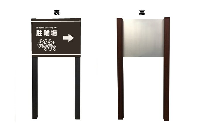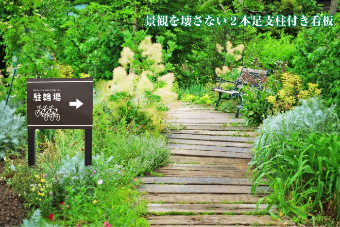 駐輪場 木目調 2本足支柱付き看板 プレートサイズ:H300×W400ミリ シルバーアルミ複合板 /植栽 マンション アパート 会社 公園 観光地 庭 園地 ガーデン おしゃれ m-ssl-3
