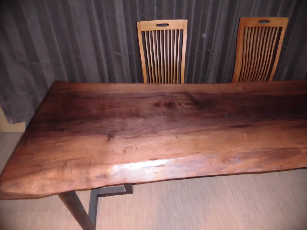 ◎料金の目安(オイル塗装への変更費用) ●長さ100cm以下 × 幅30cm以下 → 7,000円(片面) ●長さ140cm以下 × 幅40cm以下 → 8,000円(片面) ●長さ180cm以下 × 幅60cm以下 → 9,000円(片面) ●長さ181cm以上 × 幅61cm以上 → 10,000円(片面) ≪商品について≫ <天板> ●座卓、テーブル ●自然木の一枚板です。